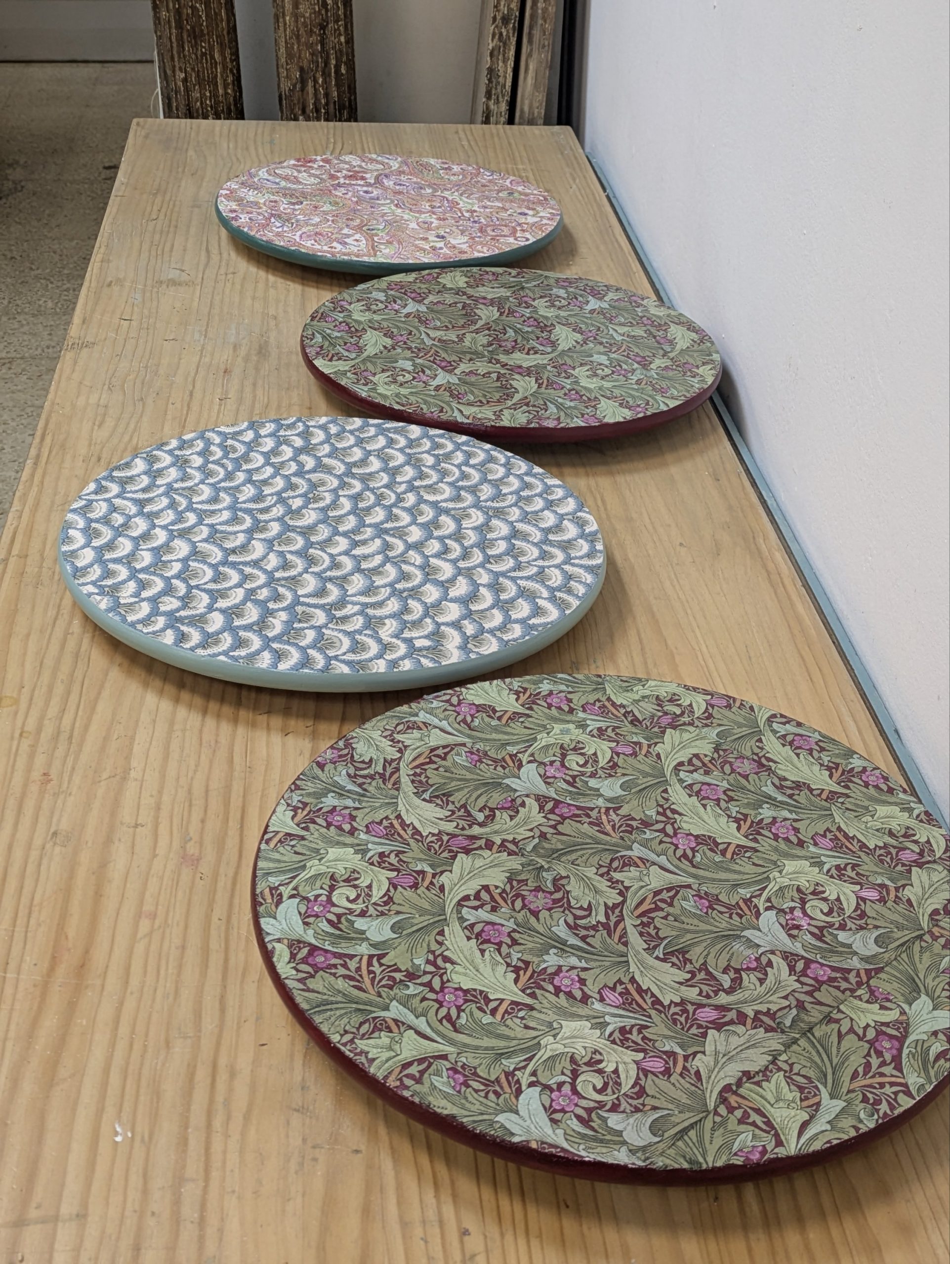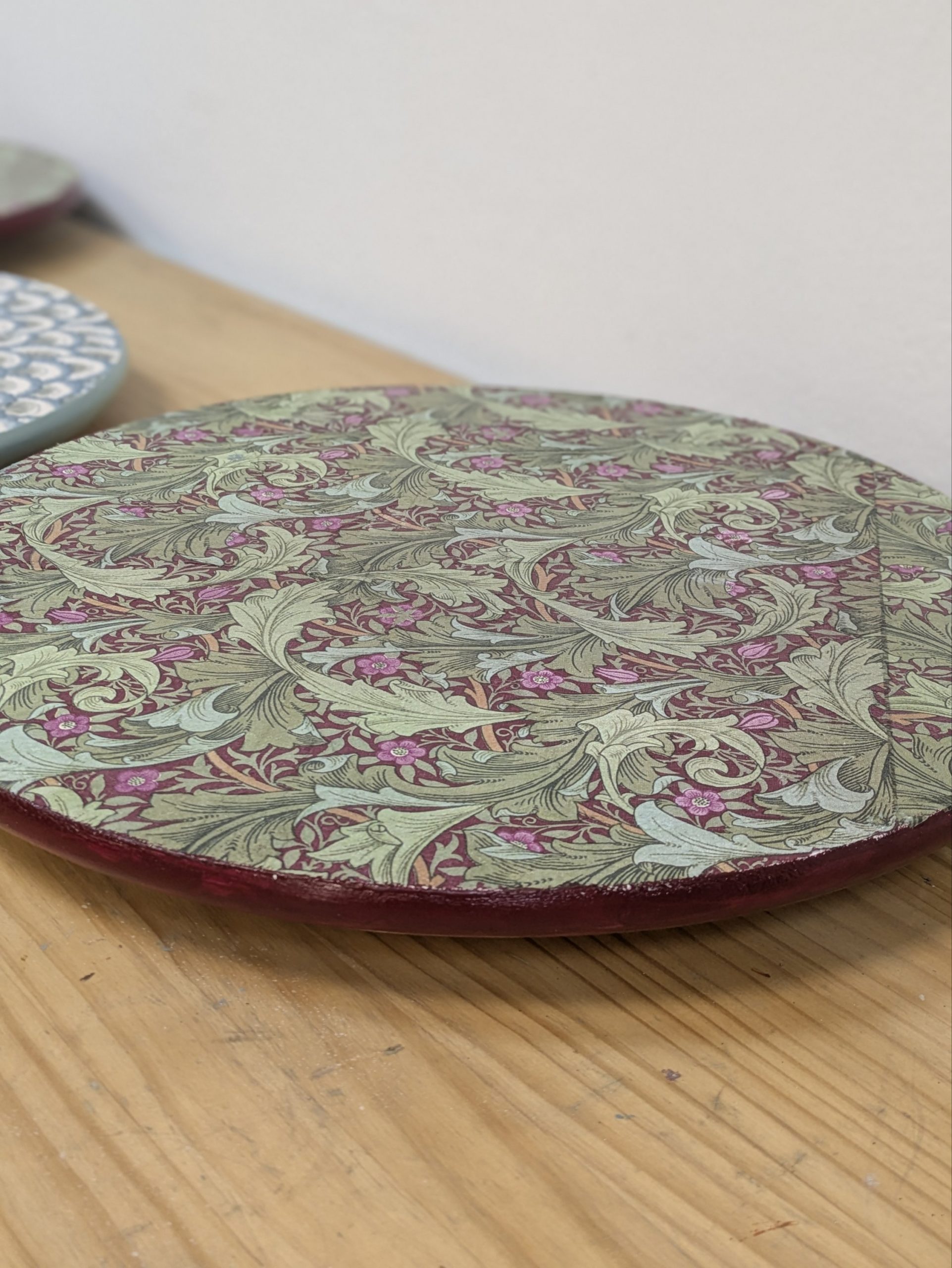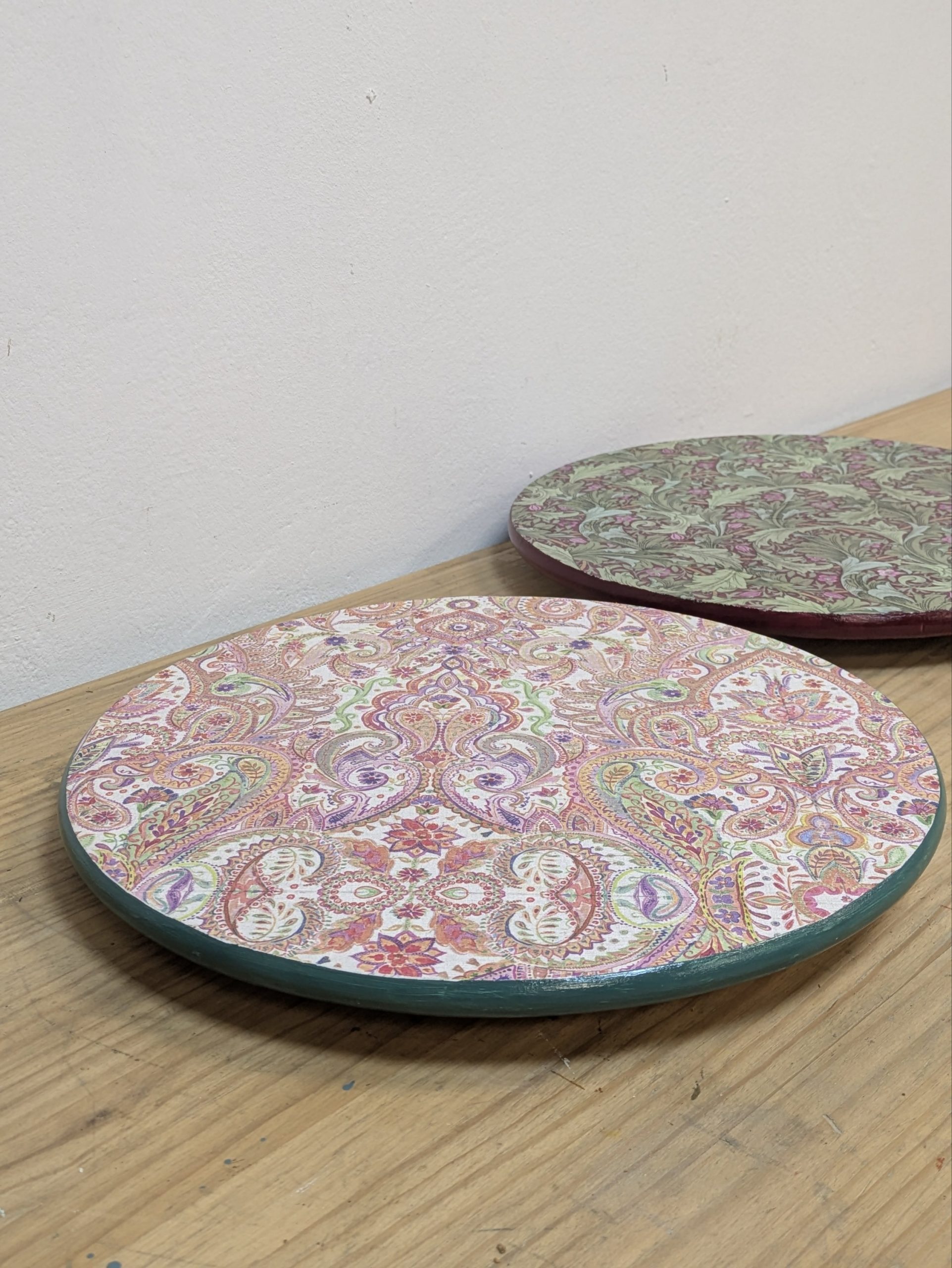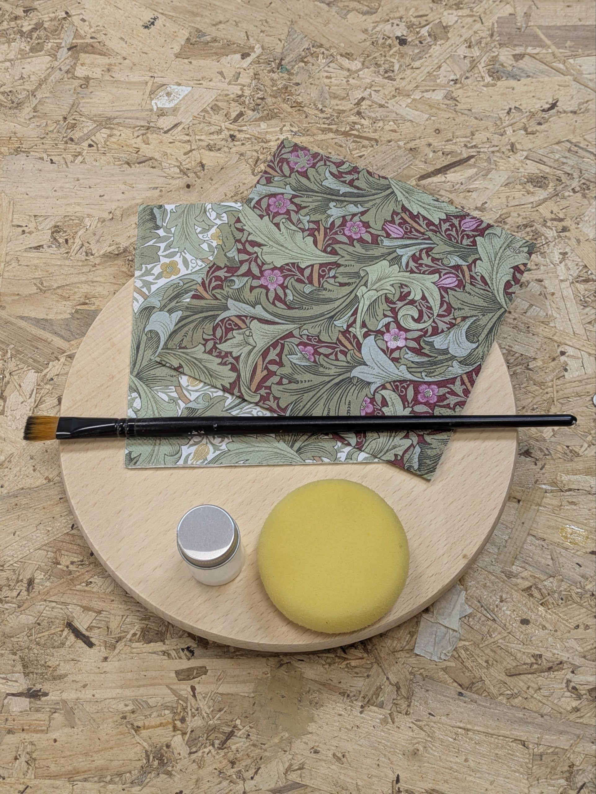 Usaremos una tabla de madera de 35 cm que prepararemos para recibir la servilleta estampada que más te guste de nuestra colección.