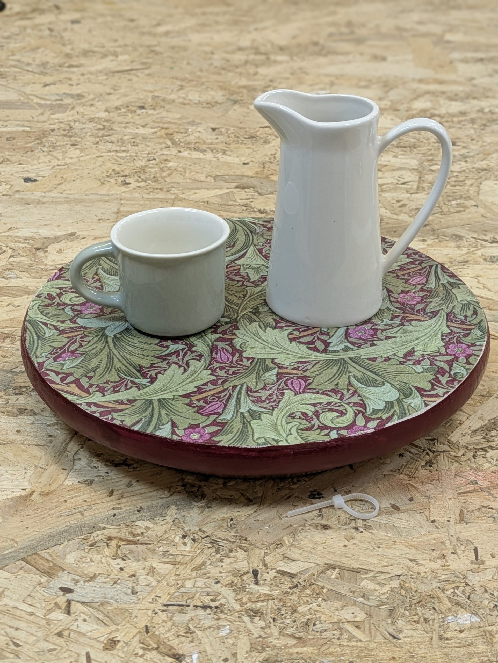 Llévate tu tabla giratoria terminada, ideal para presentar alimentos en tu mesa.